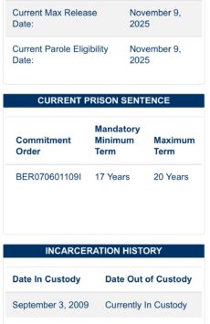 He initially received a 75-year sentence, though his term was later reduced following multiple appeals and sentence modifications. Court records show that in 2019, his sentence was formally cut to 12 years, significantly advancing his potential release date.